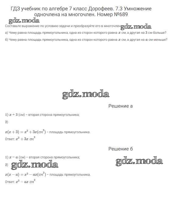 ОТВЕТ на задание № 689 Учебник по Алгебре 7 класс Дорофеев Академический школьный учебник