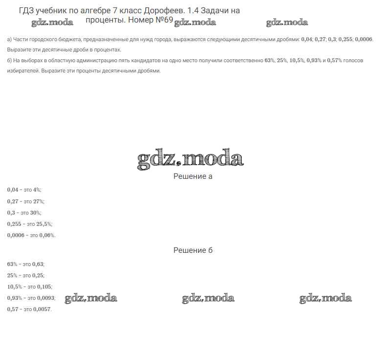 ОТВЕТ на задание № 69 Учебник по Алгебре 7 класс Дорофеев Академический школьный учебник