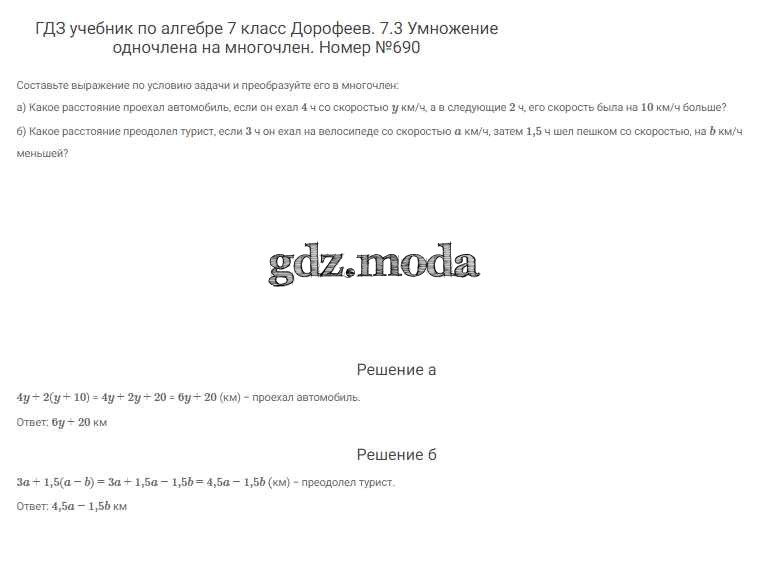 ОТВЕТ на задание № 690 Учебник по Алгебре 7 класс Дорофеев Академический школьный учебник