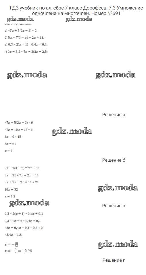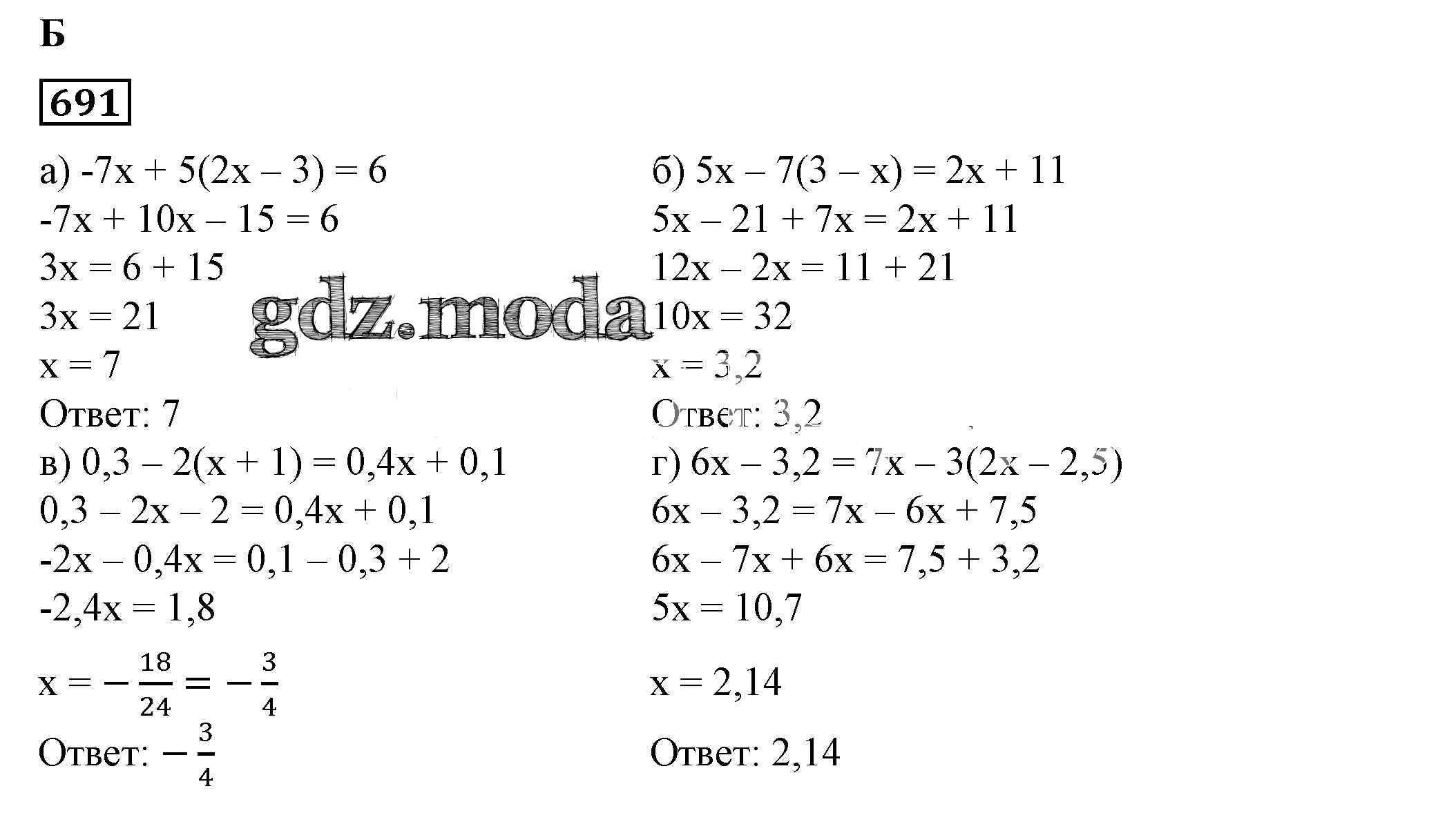 ОТВЕТ на задание № 691 Учебник по Алгебре 7 класс Дорофеев Академический школьный учебник