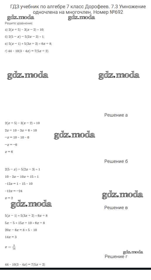 ОТВЕТ на задание № 692 Учебник по Алгебре 7 класс Дорофеев Академический школьный учебник