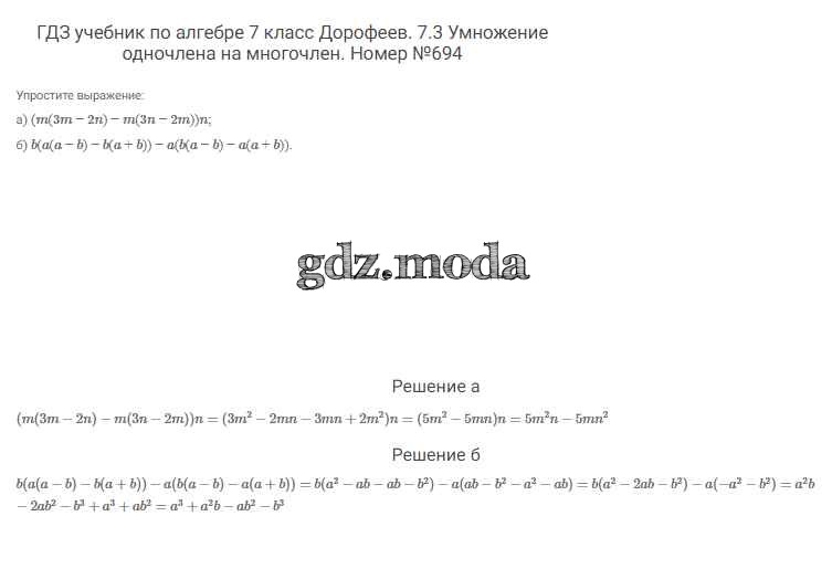 ОТВЕТ на задание № 694 Учебник по Алгебре 7 класс Дорофеев Академический школьный учебник