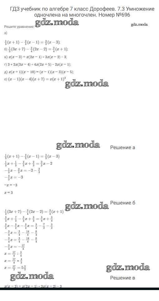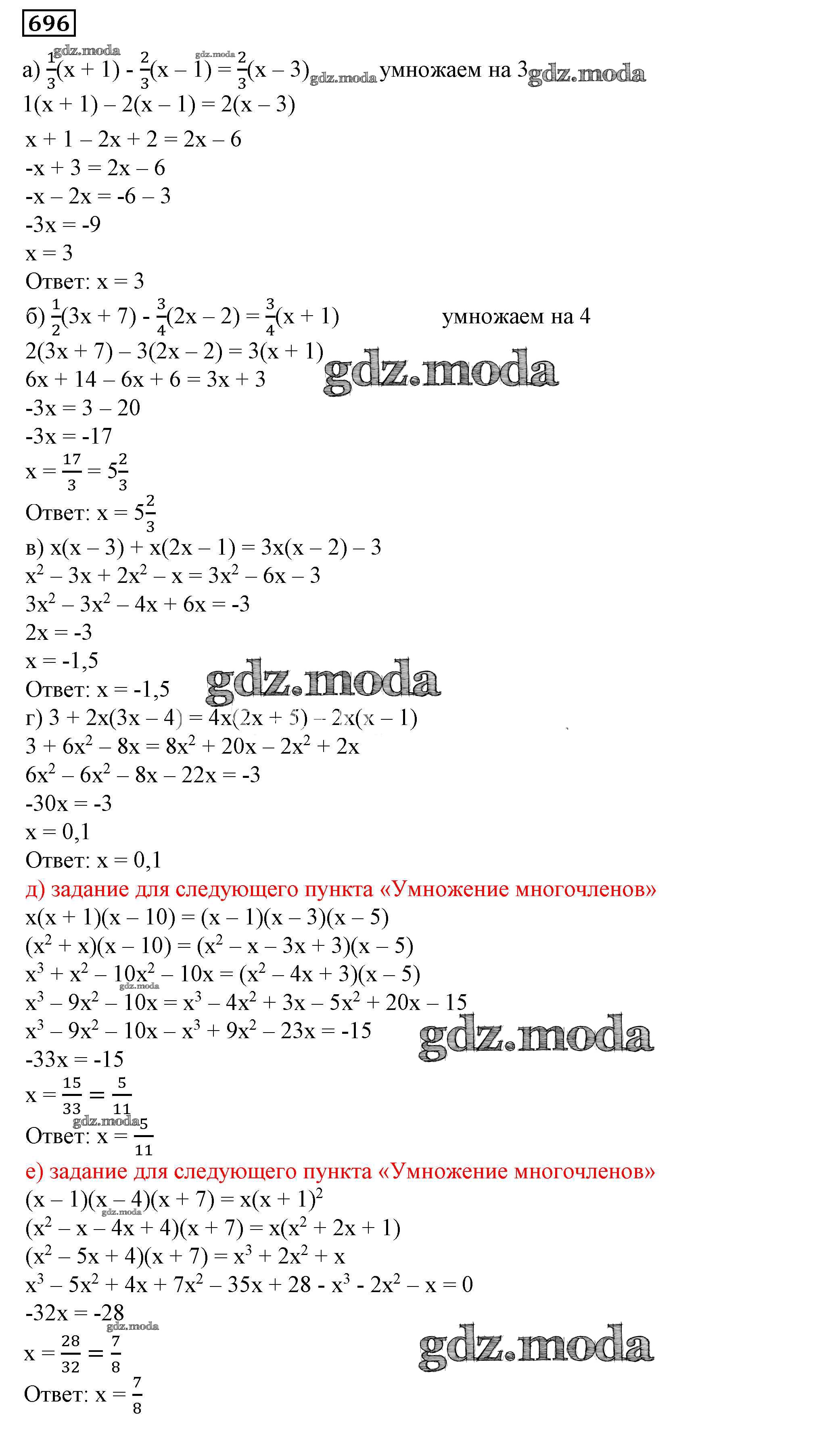 ОТВЕТ на задание № 696 Учебник по Алгебре 7 класс Дорофеев Академический школьный учебник