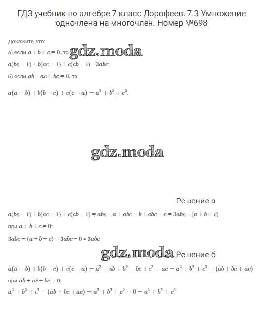 ОТВЕТ на задание № 698 Учебник по Алгебре 7 класс Дорофеев Академический школьный учебник
