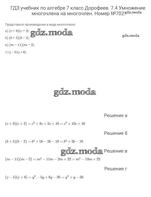 ОТВЕТ на задание № 702 Учебник по Алгебре 7 класс Дорофеев Академический школьный учебник