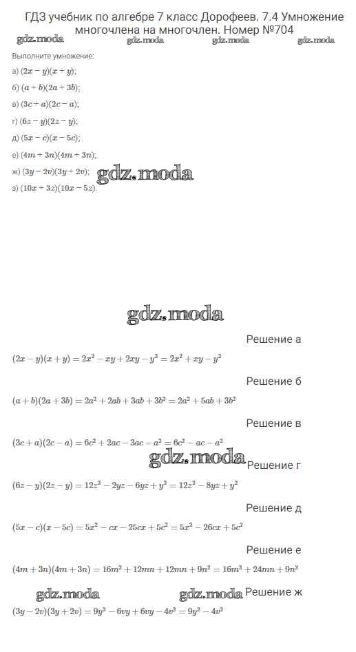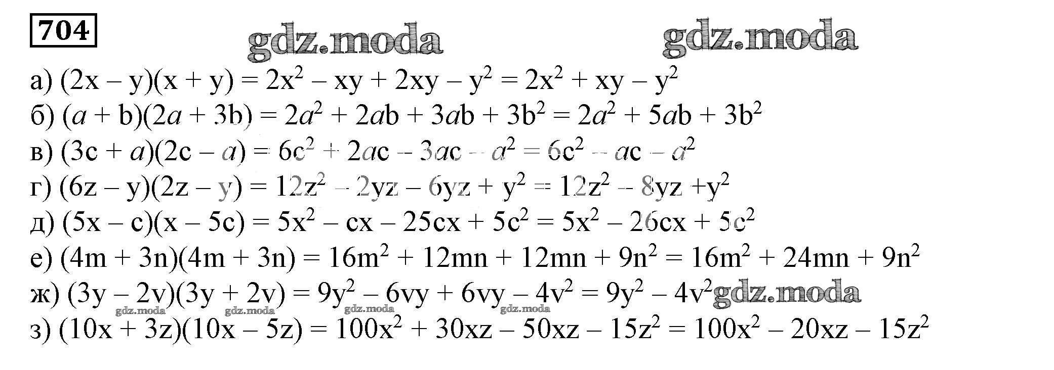 ОТВЕТ на задание № 704 Учебник по Алгебре 7 класс Дорофеев Академический школьный учебник