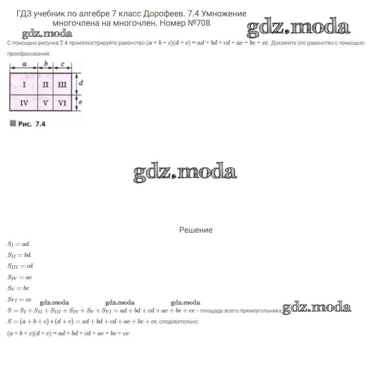 ОТВЕТ на задание № 708 Учебник по Алгебре 7 класс Дорофеев Академический школьный учебник