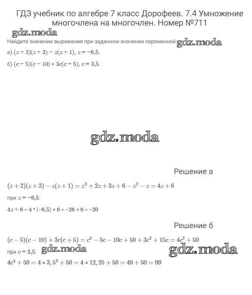ОТВЕТ на задание № 711 Учебник по Алгебре 7 класс Дорофеев Академический школьный учебник