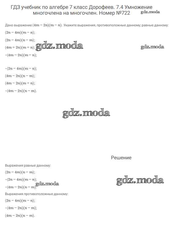 ОТВЕТ на задание № 722 Учебник по Алгебре 7 класс Дорофеев Академический школьный учебник