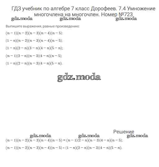 ОТВЕТ на задание № 723 Учебник по Алгебре 7 класс Дорофеев Академический школьный учебник
