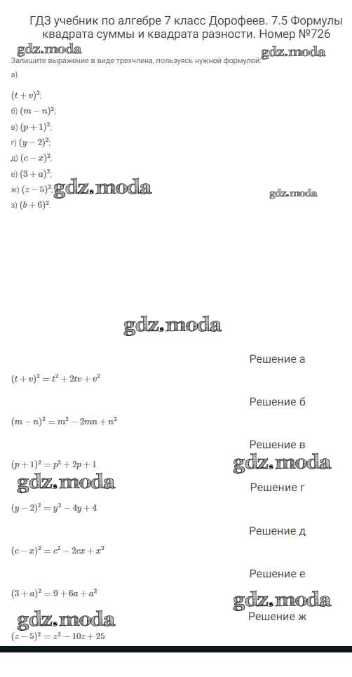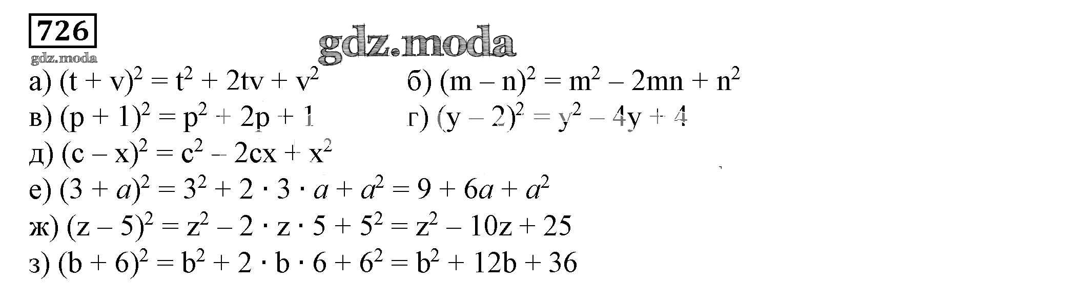 ОТВЕТ на задание № 726 Учебник по Алгебре 7 класс Дорофеев Академический школьный учебник