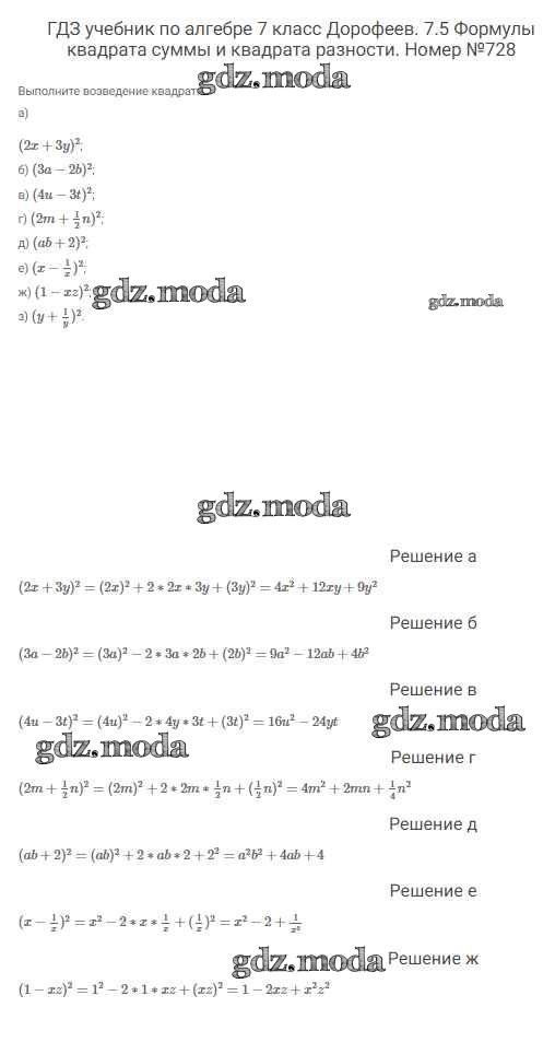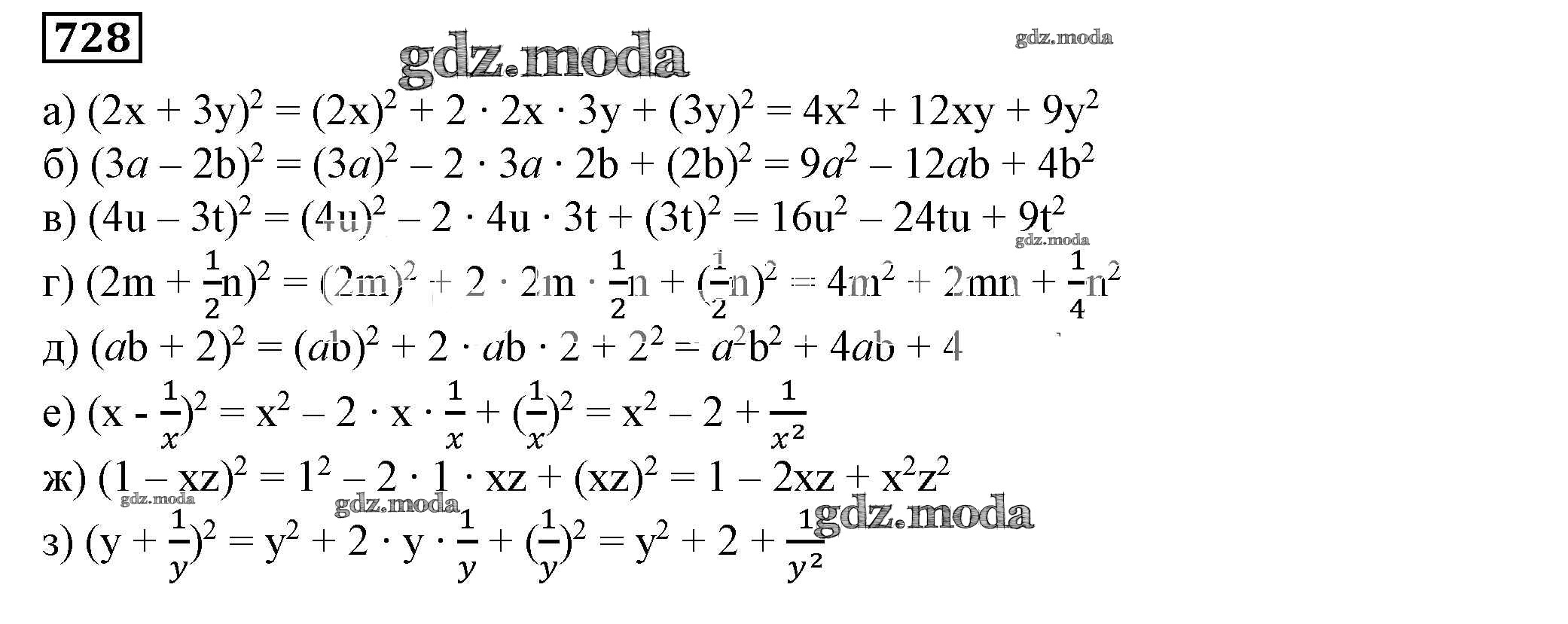 ОТВЕТ на задание № 728 Учебник по Алгебре 7 класс Дорофеев Академический школьный учебник