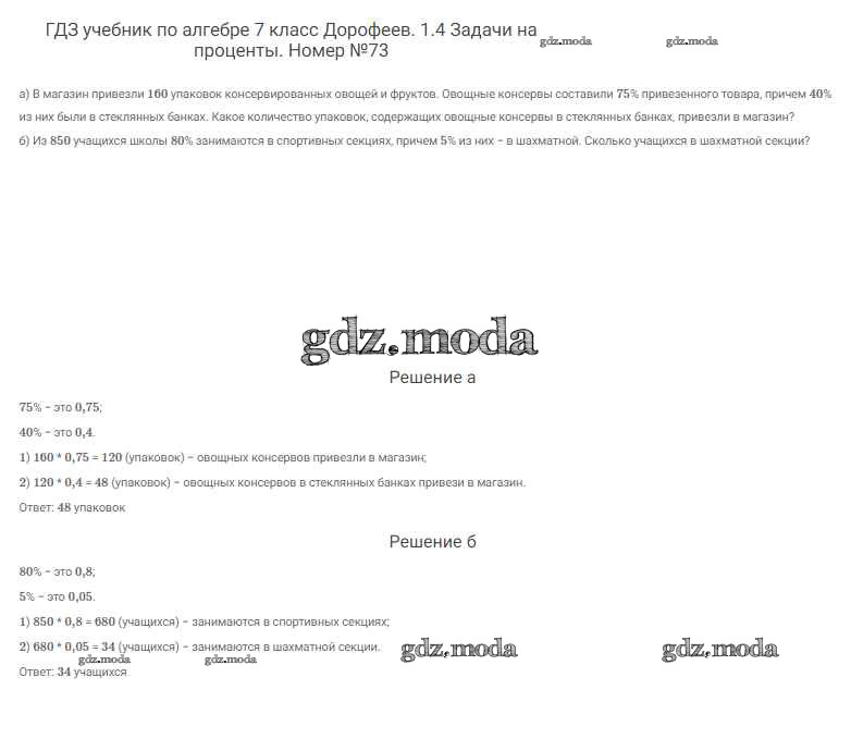 ОТВЕТ на задание № 73 Учебник по Алгебре 7 класс Дорофеев Академический школьный учебник