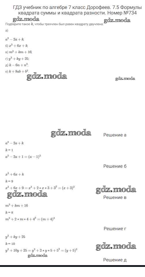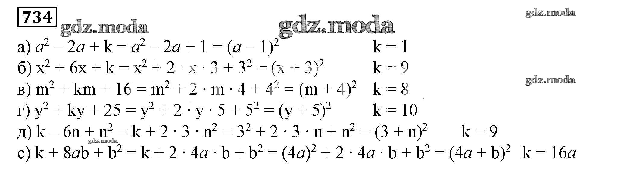 ОТВЕТ на задание № 734 Учебник по Алгебре 7 класс Дорофеев Академический школьный учебник