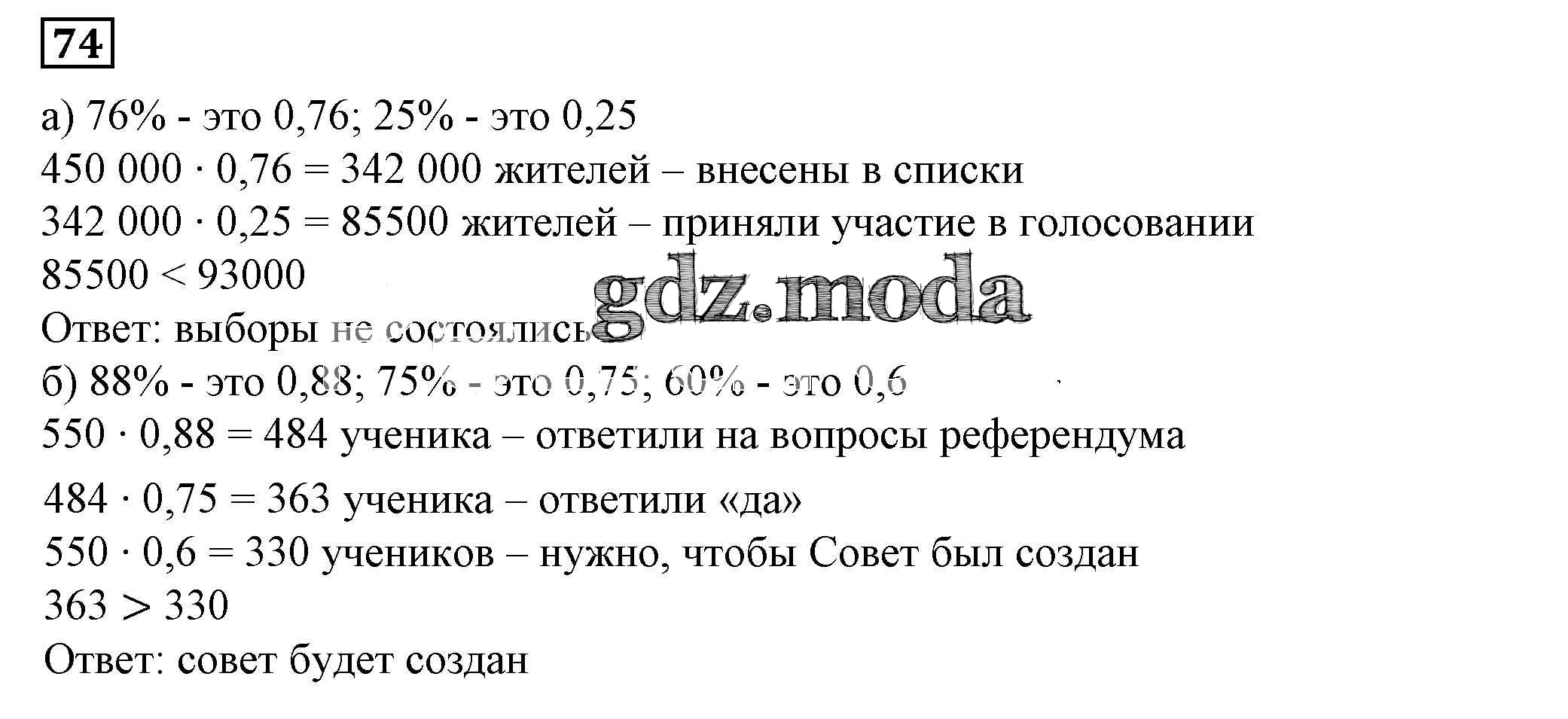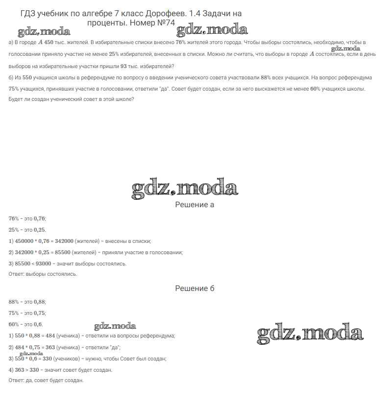 ОТВЕТ на задание № 74 Учебник по Алгебре 7 класс Дорофеев Академический школьный учебник