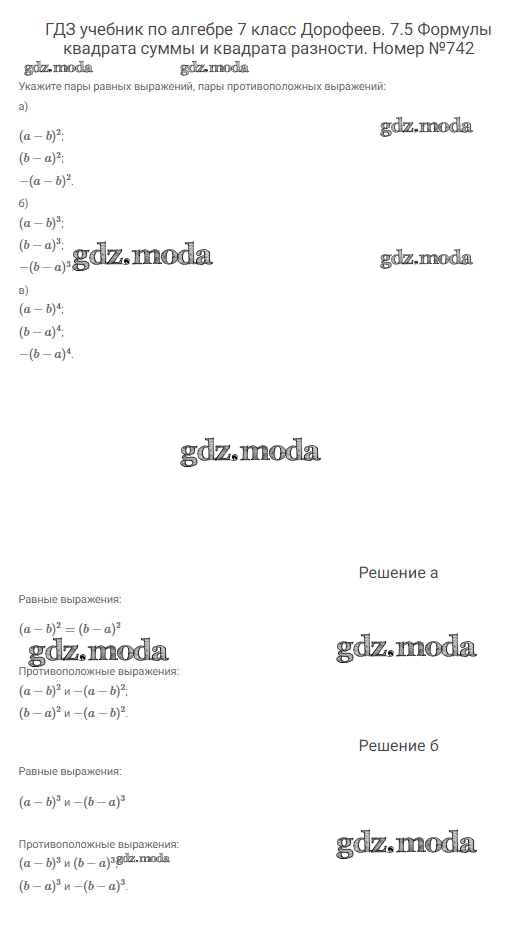 ОТВЕТ на задание № 742 Учебник по Алгебре 7 класс Дорофеев Академический школьный учебник