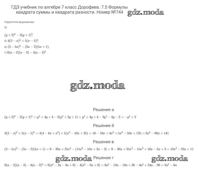 ОТВЕТ на задание № 744 Учебник по Алгебре 7 класс Дорофеев Академический школьный учебник