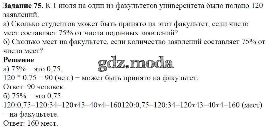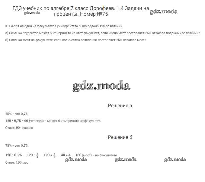 ОТВЕТ на задание № 75 Учебник по Алгебре 7 класс Дорофеев Академический школьный учебник