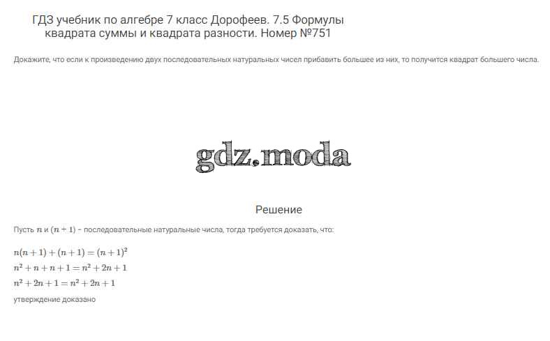 ОТВЕТ на задание № 751 Учебник по Алгебре 7 класс Дорофеев Академический школьный учебник