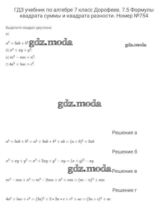 ОТВЕТ на задание № 754 Учебник по Алгебре 7 класс Дорофеев Академический школьный учебник