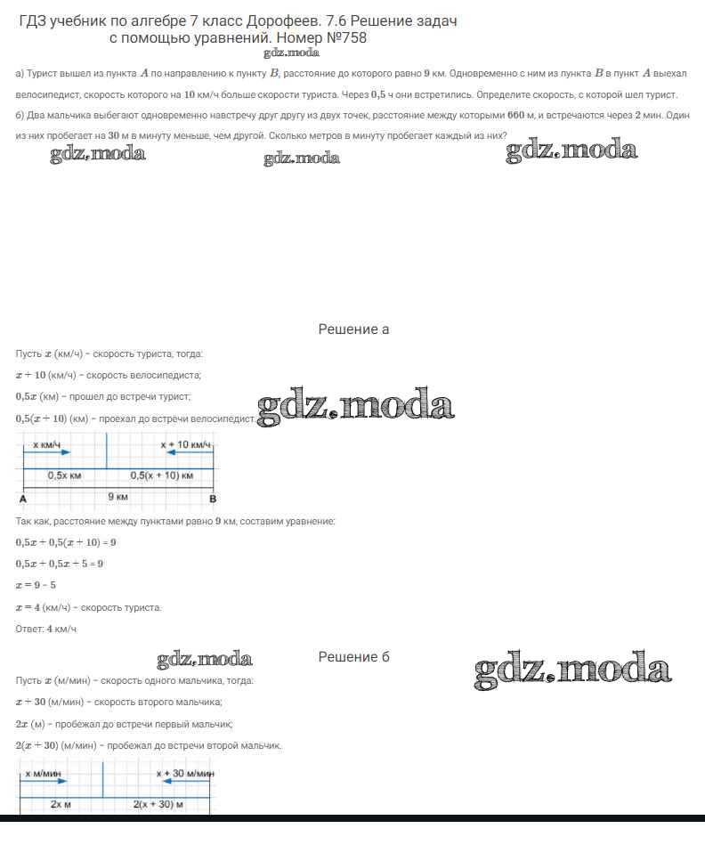 ОТВЕТ на задание № 758 Учебник по Алгебре 7 класс Дорофеев Академический школьный учебник