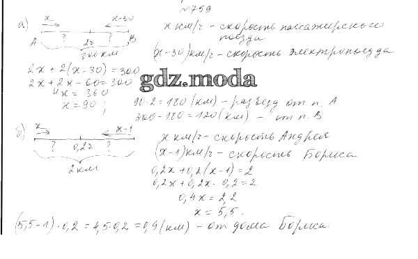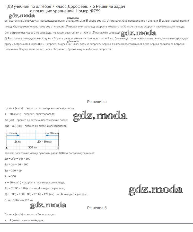 ОТВЕТ на задание № 759 Учебник по Алгебре 7 класс Дорофеев Академический школьный учебник