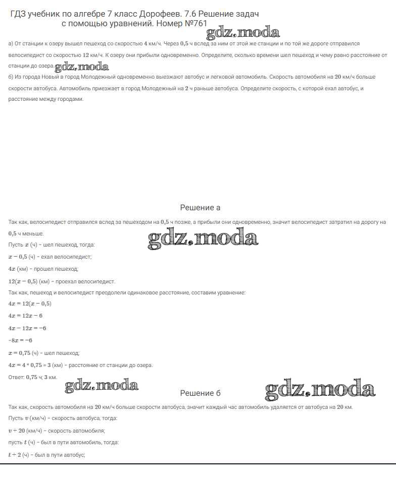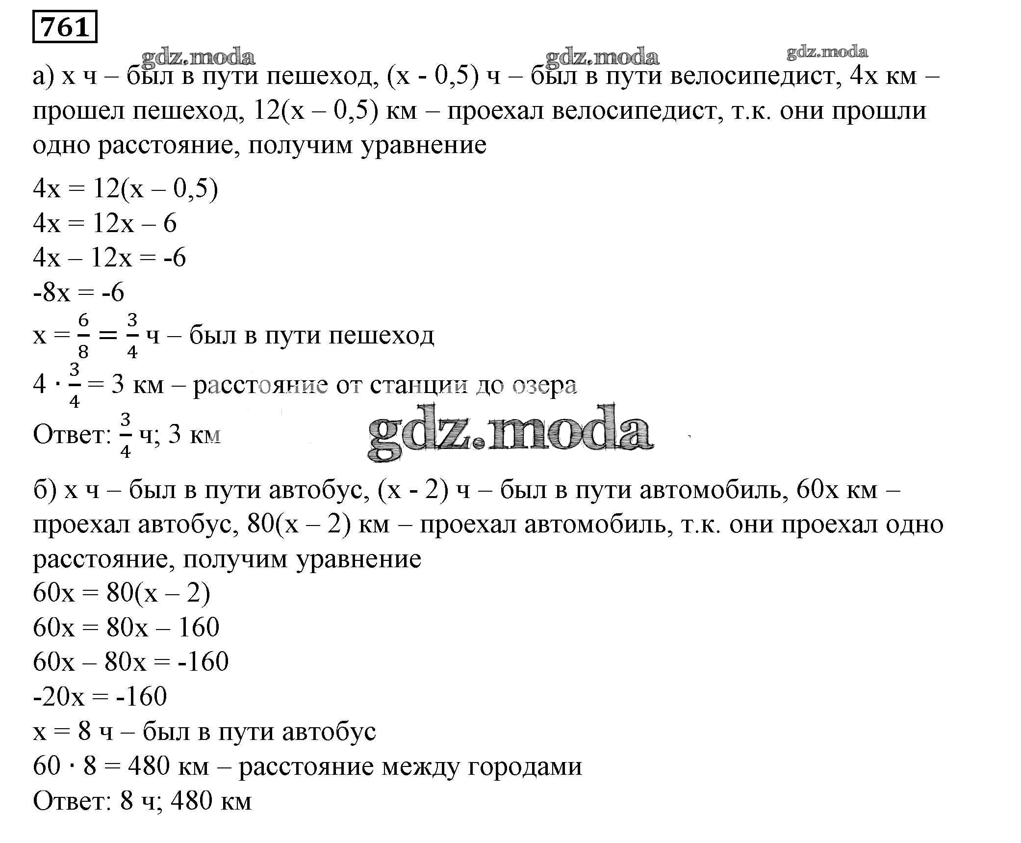 ОТВЕТ на задание № 761 Учебник по Алгебре 7 класс Дорофеев Академический школьный учебник