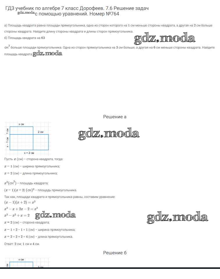 ОТВЕТ на задание № 764 Учебник по Алгебре 7 класс Дорофеев Академический школьный учебник