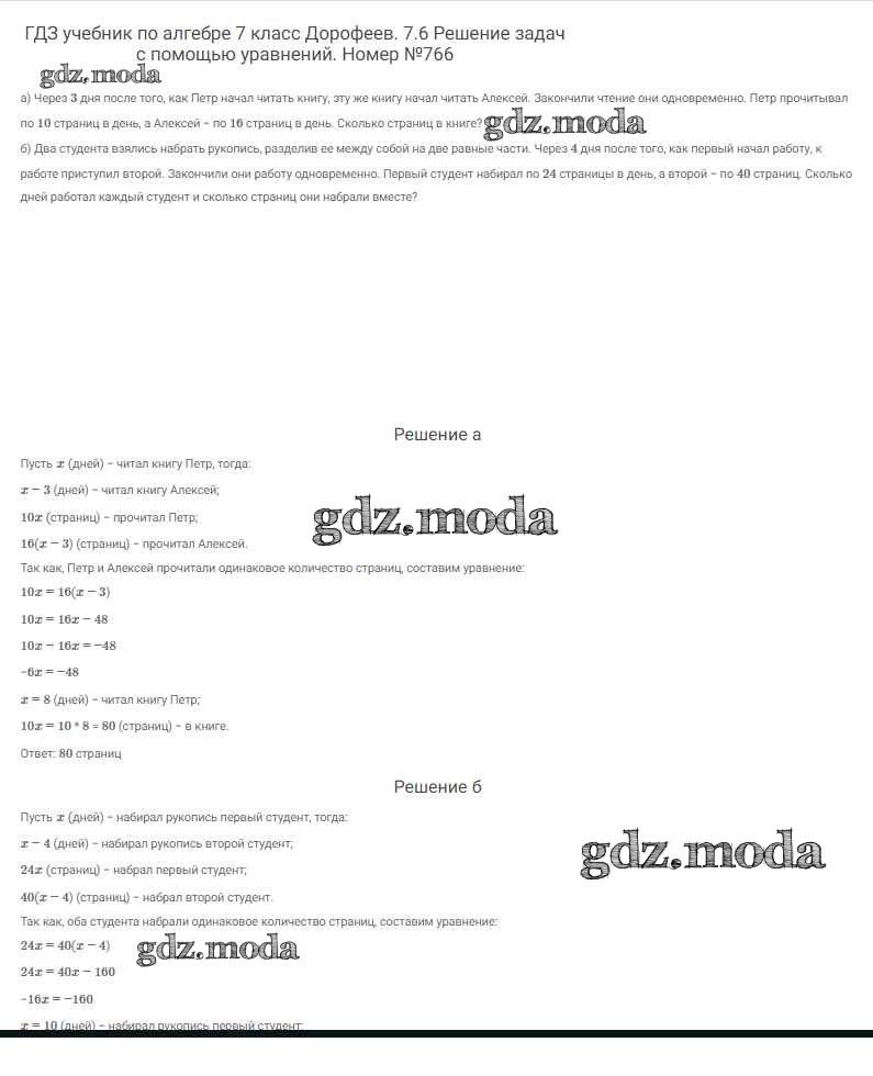ОТВЕТ на задание № 766 Учебник по Алгебре 7 класс Дорофеев Академический школьный учебник