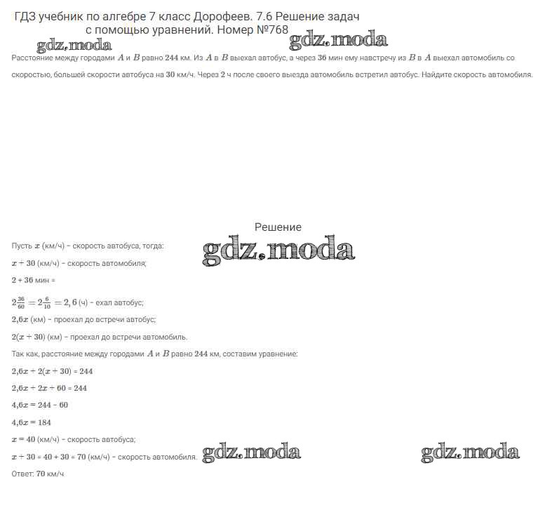 ОТВЕТ на задание № 768 Учебник по Алгебре 7 класс Дорофеев Академический школьный учебник