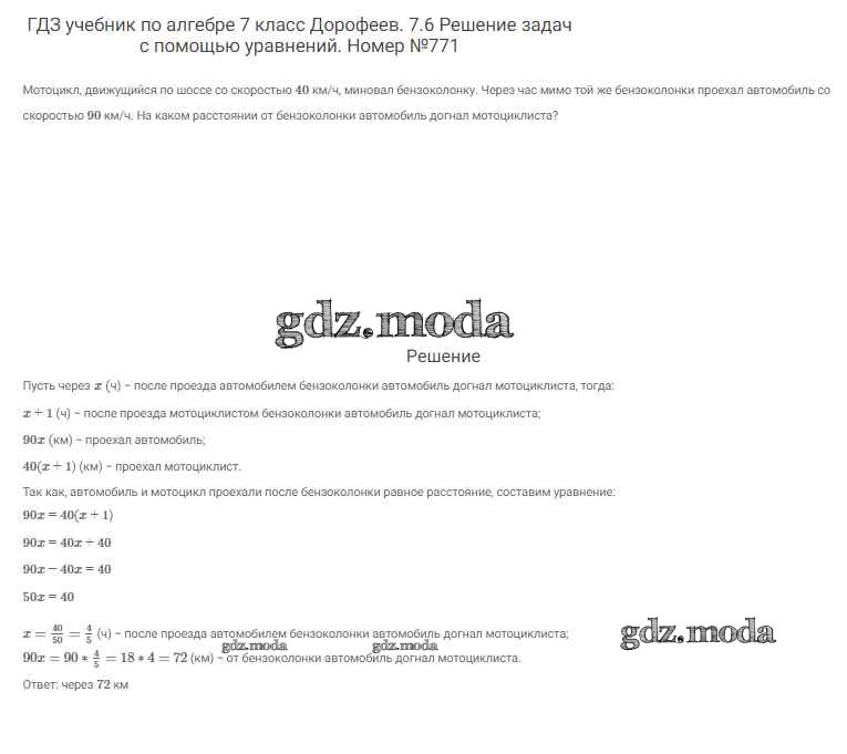 ОТВЕТ на задание № 771 Учебник по Алгебре 7 класс Дорофеев Академический школьный учебник