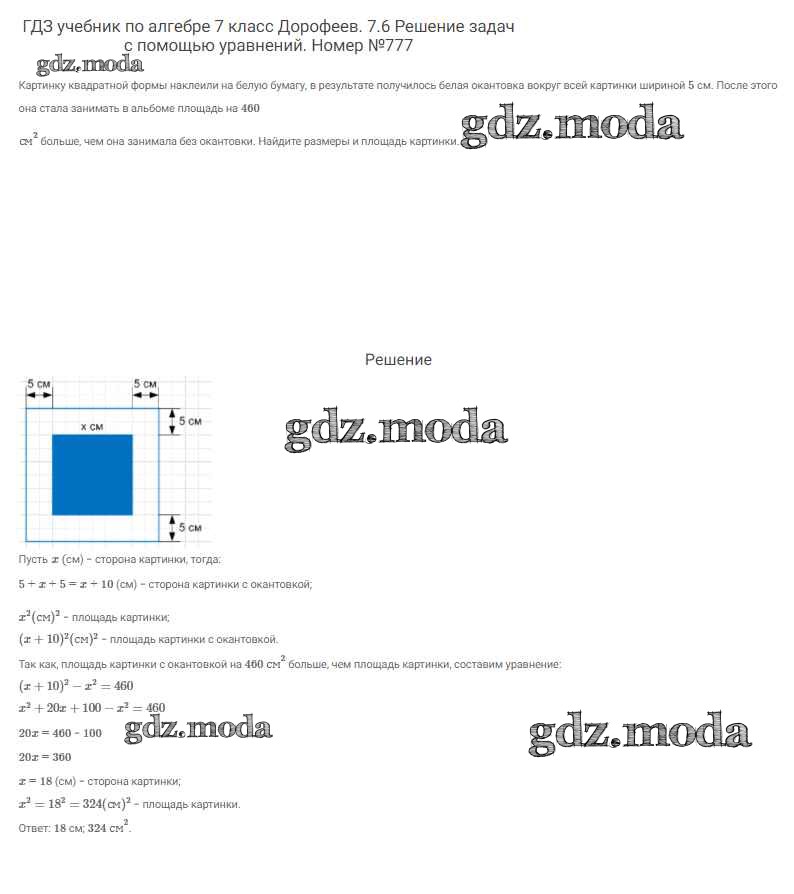 ОТВЕТ на задание № 777 Учебник по Алгебре 7 класс Дорофеев Академический школьный учебник