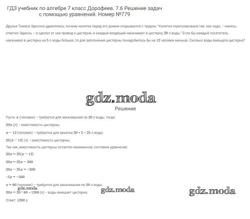 ОТВЕТ на задание № 779 Учебник по Алгебре 7 класс Дорофеев Академический школьный учебник