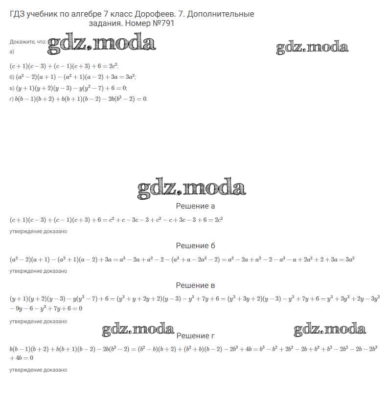 ОТВЕТ на задание № 791 Учебник по Алгебре 7 класс Дорофеев Академический школьный учебник