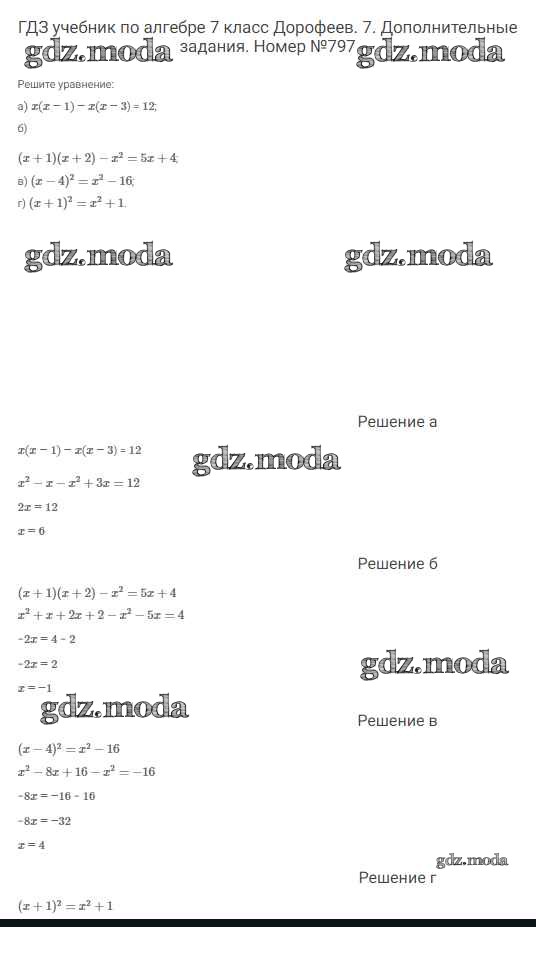 ОТВЕТ на задание № 797 Учебник по Алгебре 7 класс Дорофеев Академический школьный учебник