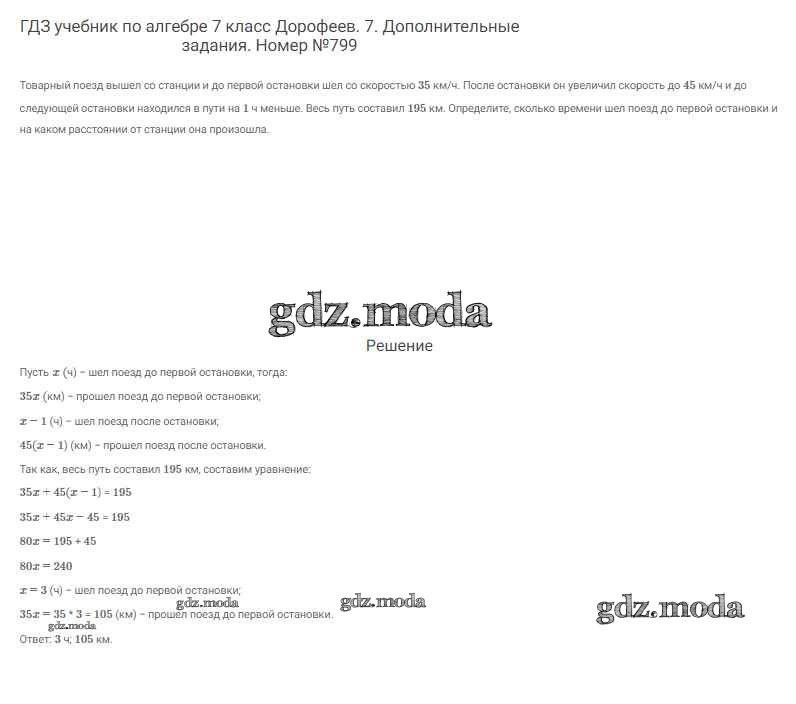 ОТВЕТ на задание № 799 Учебник по Алгебре 7 класс Дорофеев Академический школьный учебник