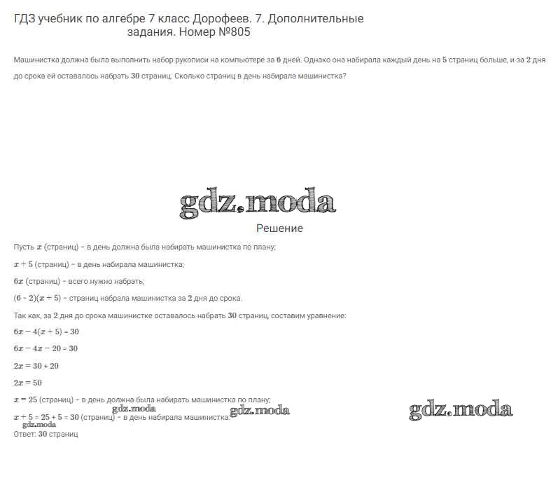 ОТВЕТ на задание № 805 Учебник по Алгебре 7 класс Дорофеев Академический школьный учебник