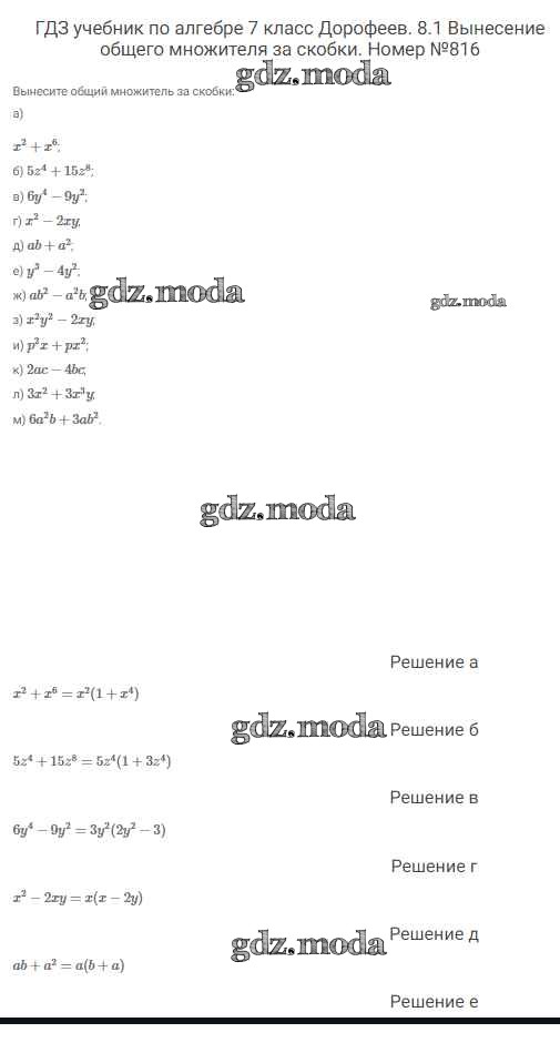 ОТВЕТ на задание № 816 Учебник по Алгебре 7 класс Дорофеев Академический школьный учебник