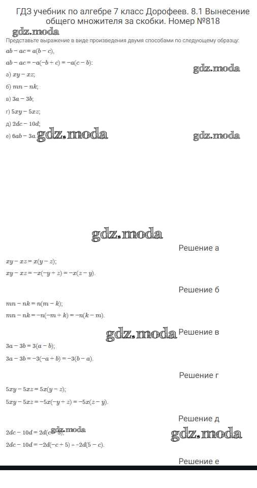 ОТВЕТ на задание № 818 Учебник по Алгебре 7 класс Дорофеев Академический школьный учебник