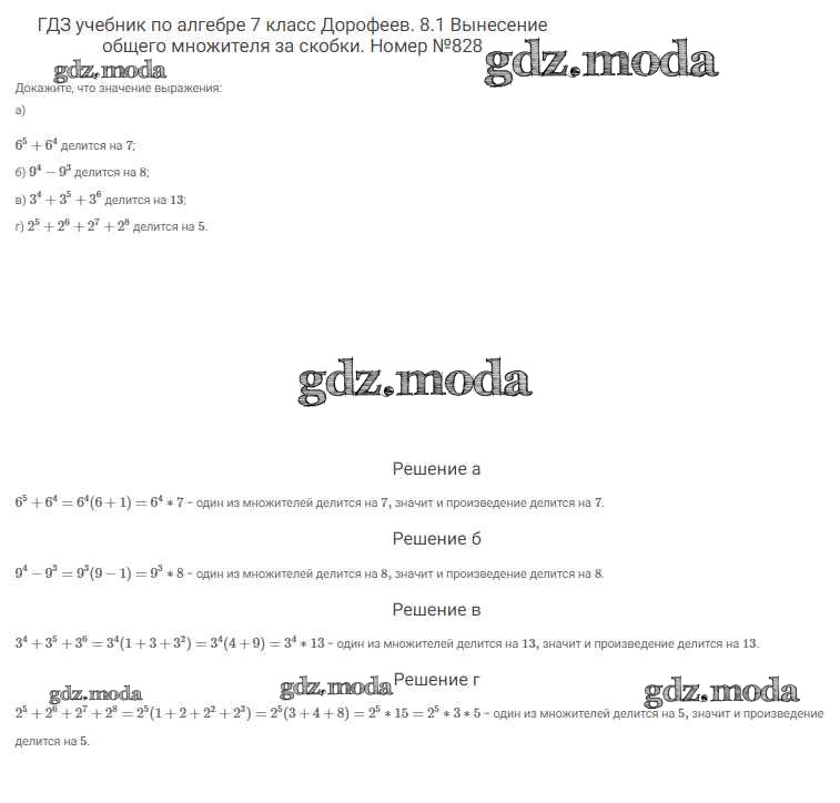 ОТВЕТ на задание № 828 Учебник по Алгебре 7 класс Дорофеев Академический школьный учебник