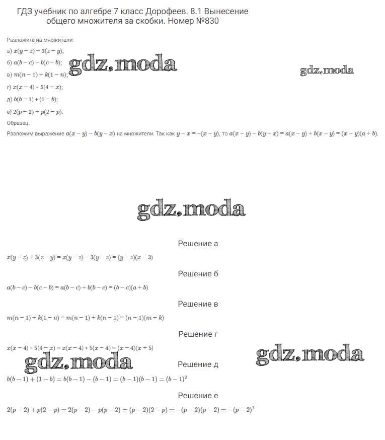 ОТВЕТ на задание № 830 Учебник по Алгебре 7 класс Дорофеев Академический школьный учебник