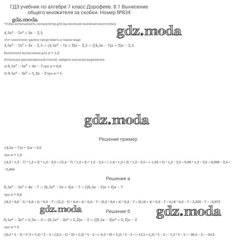 ОТВЕТ на задание № 834 Учебник по Алгебре 7 класс Дорофеев Академический школьный учебник
