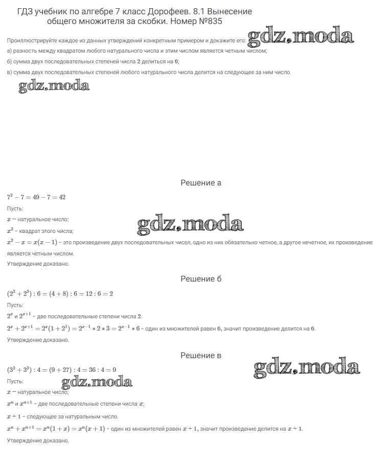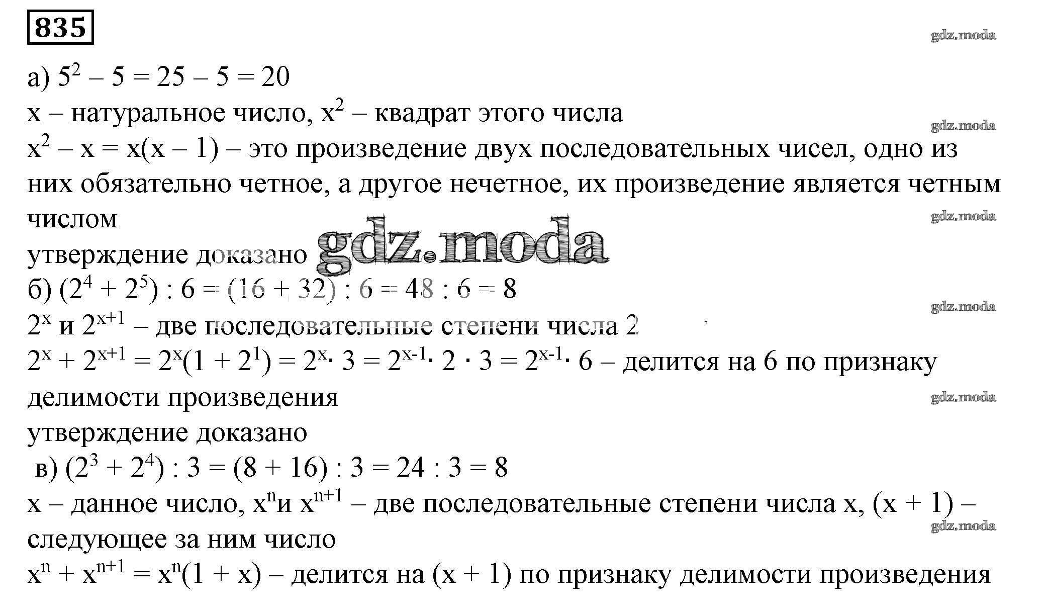 ОТВЕТ на задание № 835 Учебник по Алгебре 7 класс Дорофеев Академический школьный учебник