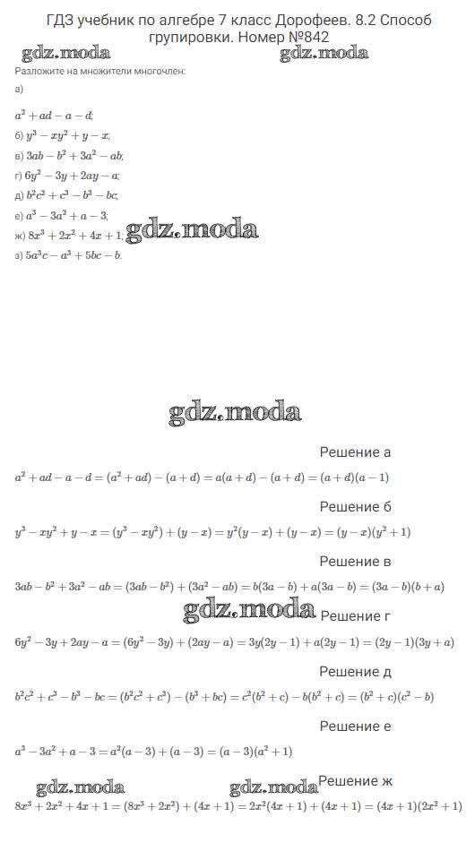 ОТВЕТ на задание № 842 Учебник по Алгебре 7 класс Дорофеев Академический школьный учебник