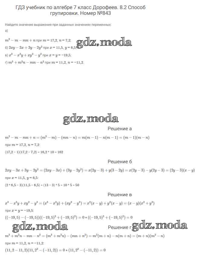 ОТВЕТ на задание № 843 Учебник по Алгебре 7 класс Дорофеев Академический школьный учебник
