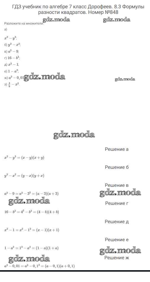 ОТВЕТ на задание № 848 Учебник по Алгебре 7 класс Дорофеев Академический школьный учебник