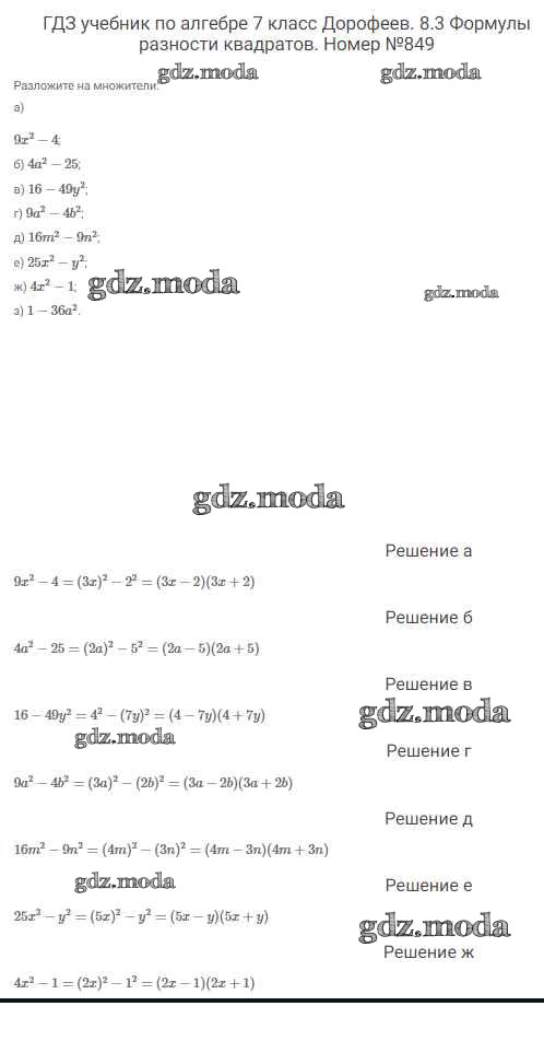 ОТВЕТ на задание № 849 Учебник по Алгебре 7 класс Дорофеев Академический школьный учебник