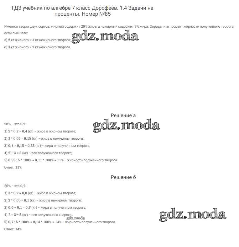 ОТВЕТ на задание № 85 Учебник по Алгебре 7 класс Дорофеев Академический школьный учебник