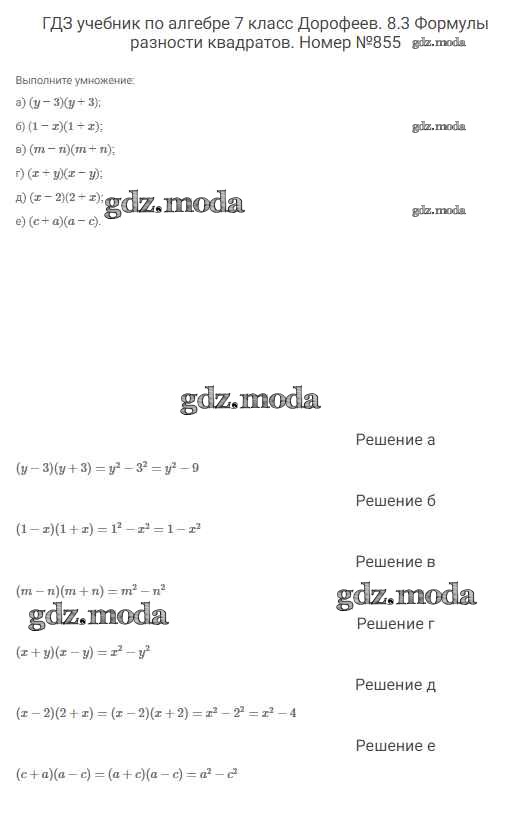 ОТВЕТ на задание № 855 Учебник по Алгебре 7 класс Дорофеев Академический школьный учебник