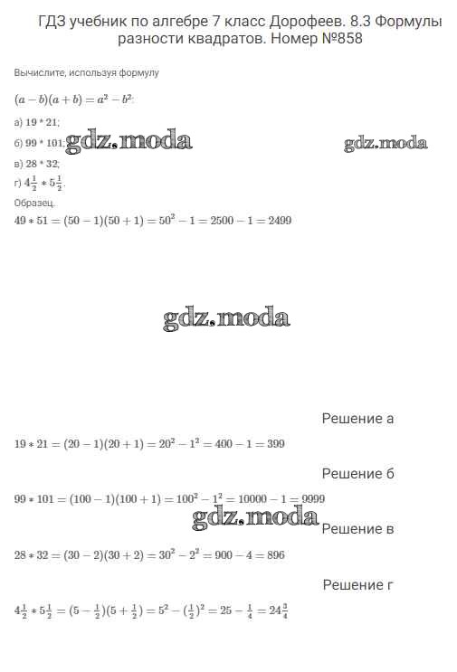 ОТВЕТ на задание № 858 Учебник по Алгебре 7 класс Дорофеев Академический школьный учебник